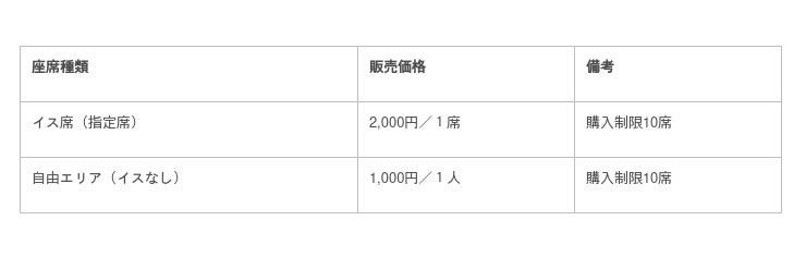 ※市民優先販売を先行しているため、席によっては一般販売開始時点で完売している場合があります。