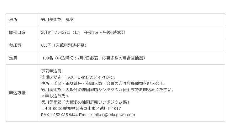 本屛風は、2019年7月27日(土)から9月8日(日)まで徳川美術館・名古屋市蓬左文庫で開催される特別展「合戦図―もののふたちの勇姿を描く―」にて初公開します。また、7月28日(日)に同美術館で開催するシンポジウム「大坂冬の陣図屛風、これまでとこれから」では、本プロジェクトの取り組みを紹介します。