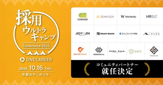 人事向け採用クラウド「ONE CAREER CLOUD」を展開する株式会社ワンキャリア(本社:東京都渋谷区、代表取締役社長 執行役員CEO:宮下 尚之、以下「ワンキャリア」)は、2025年10月16日(木)に京都市勧業館 みやこめっせ(京都府京都市左京区)で開催される当社初の採用担当者向け大型カンファレンス『採用ウルトラキャンプ』に、13団体のコミュニティパートナーが決定したことをお知らせします。