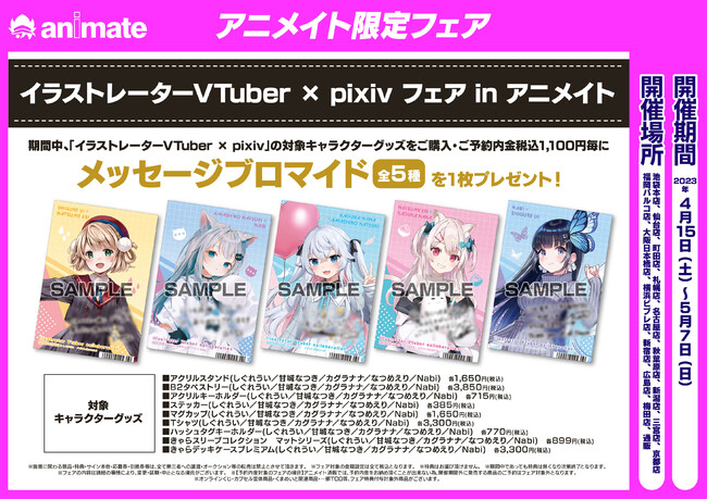~メッセージブロマイドをもらえる「イラストレーターVTuber × pixiv フェア inアニメイト」も開催~