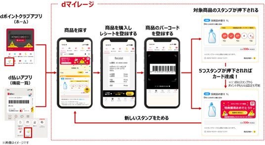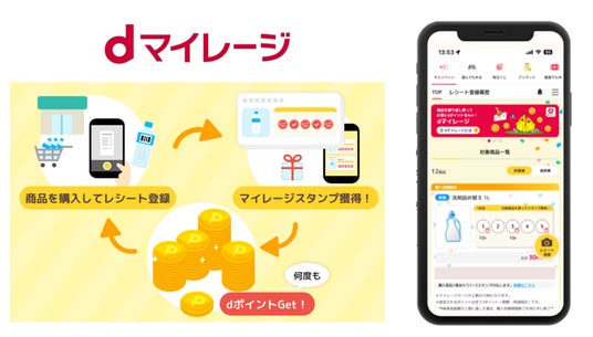 株式会社 NTT ドコモ(以下、ドコモ)と株式会社インテージ(以下、インテージ)、株式会社リサーチ・アンド・イノベーション※1(以下、RnI)は、対象商品※2を購入し、レシートと商品バーコードを登録するとdポイントがたまる新たなサービス「dマイレージ」※3(以下、本サービス)を、2024年9月17日(火)から開始します。なお、本サービスの提供元はドコモです。