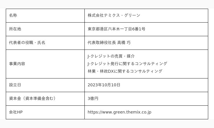 そしてこのたび、カーボンニュートラル社会の実現に向けた取組みを加速すべく、2023年10月10日(火)、カーボンクレジット事業および林業・林政DX事業を行う新会社「テミクス・グリーン」を設立いたしました。