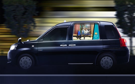 仕掛け2.: 空車時、モビリティ車窓メディア「Canvas」を活用し、