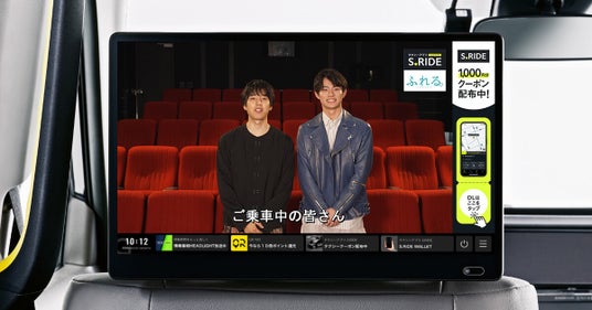 また、期間中、都内を走行する1万台以上のS.RIDE対応タクシーの車内にて、坂東さん、前田さんが登場する特別動画を放映します。