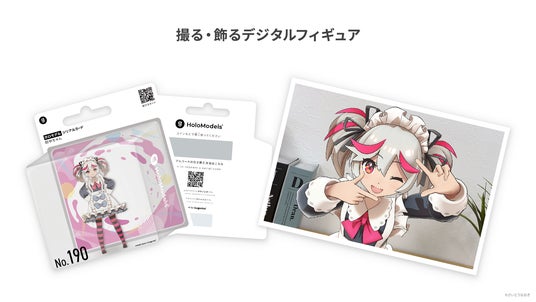 デジタルフィギュアサービス「ホロモデル」は、誰でも簡単にキャラクターを「撮って」「飾れる」スマートフォンアプリです。表情・ポーズ・サイズを自由に変更が可能で、外出先や自宅で手軽にどこでも楽しむことができます。