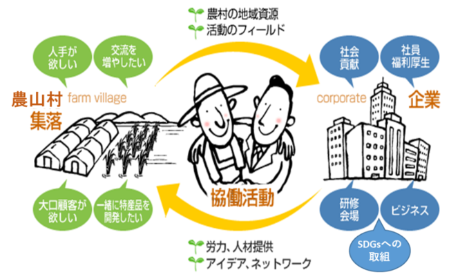 農山村地域と企業等が協働活動を行うことで、地域の活性化や新たな価値の創造につながります。また、協働活動を行うことはSDGs(持続可能な開発目標)の推進にも繋がります。