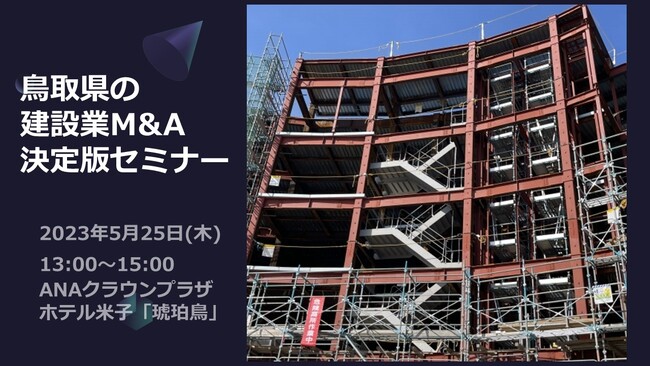 株式会社日本M&Aセンター(以下、日本M&Aセンター、本社:東京都千代田区 / 代表取締役社長:三宅 卓 / URL:https://www.nihon-ma.co.jp/) は、5月25日(木)、鳥取県のANAクラウンプラザホテル米子(オンラインでも同時開催)にて、建設業の経営者に向け、セミナー「鳥取県の建設業M&A決定版セミナー」(共催:有限会社日刊建設工業新聞)を開催します。本セミナーでは、現在増えつつある建設業界のM&Aについて解説するほか、当社支援により後継者不在問題を解消したエスイー鉄建株式会社の専務取締役 森田 浩様をお招きし、M&Aを検討した背景やポイントなどを伺います。