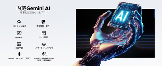 最新OSに加え、AI機能にも対応。検索・翻訳・文章生成など、日常からビジネスまで幅広く活用可能。