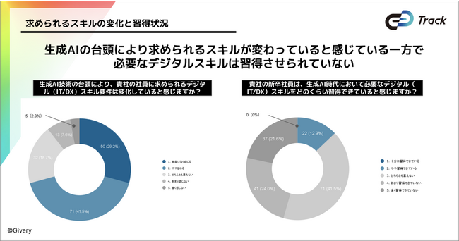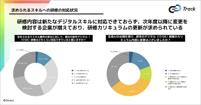 デジタル人材の採用・育成・評価のためのHRプラットフォーム「Track(トラック)」を展開する株式会社ギブリー(本社︰東京都渋谷区、代表︰井手 高志、以下、当社)は、大手企業に所属する新入社員研修担当者を中心に実施した「新入社員研修のデジタル(IT/DX)領域への対応に関する意識・実施調査」の結果を発表しました。