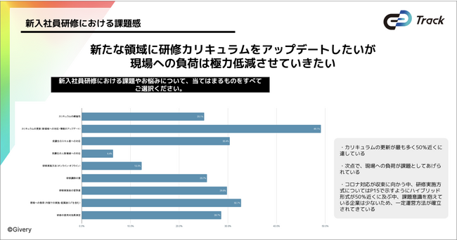 -デジタル領域への新たなスキルが求められる中、新入社員研修ではカリキュラムが新領域に対応していないことが課題となっている