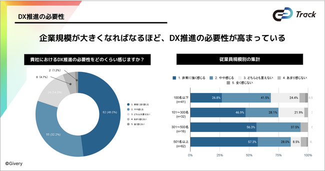 -組織の規模が大きくなるにつれて、DX推進の重要性が高まっていることがわかる