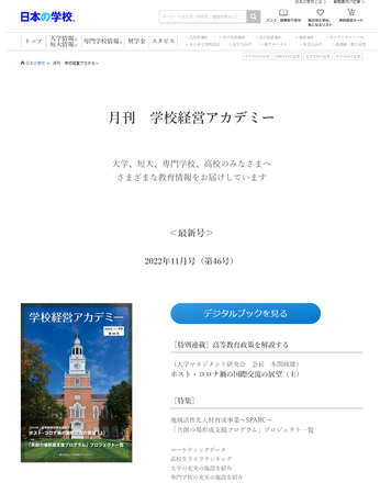 以前より大学、短期大学、専門学校、高等学校などの教育機関に向けて、情報の提供を行っております「月刊学校経営アカデミー」につきまして、オンラインで読むことが出来るデジタルブックを公開致しました。