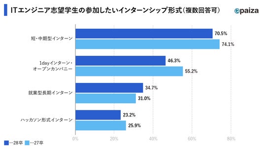 ■【28卒・27卒比較】ITエンジニア志望学生のインターンシップに対する希望形式