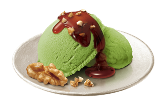 旨味が強く濃厚な抹茶アイスクリームの中に、とろりとした黒蜜ソースを加え、香ばしいキャンディングクルミを散りばめた抹茶チョコレートコーティングで包み込みました。