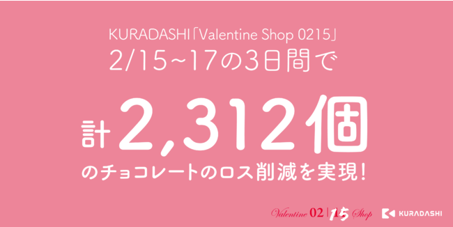 3日間の「Valentine Shop 0215」では、オンライン・オフライン合わせて計2,312個のチョコレートロス削減を実現いたしました。