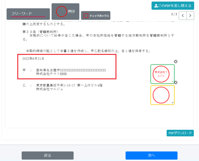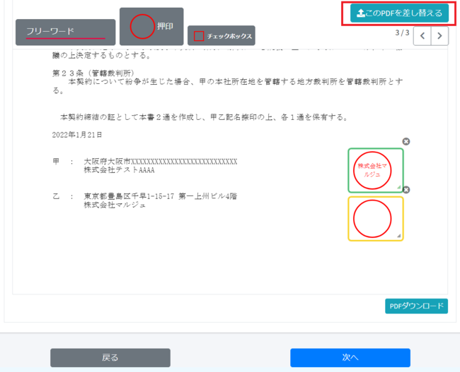 書類のフォーマットやFASTSIGNの入力欄(押印欄)の位置はそのままに中身のPDFファイルだけを差し替えることができます!