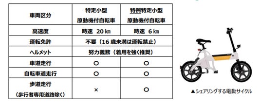 「電動サイクル」は、2023年7月の道路交通法改正により利用可能となった「特定小型原動機付自転車」に分類される乗り物で、16歳以上であれば運転免許は不要でご利用いただくことができます。着座式で重心が低く、座席に体重を預けられる安定感があり、自転車と同じ操作感で初めての乗車でも安心して走行が可能です。