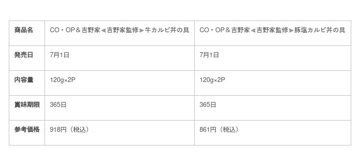 株式会社吉野家(代表取締役社長:河村泰貴、以下吉野家)は、日本生活協同組合連合会(略称:日本生協連、代表理事会長:土屋敏夫)とコラボレーションを実施し、2023年7月1日より全国の生協※で「CO・OP&吉野家≪吉野家監修≫牛カルビ丼の具(以下、牛カルビ丼の具)」「CO・OP&吉野家≪吉野家監修≫豚塩カルビ丼の具(以下、豚塩カルビ丼の具)」を発売します。