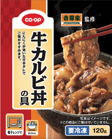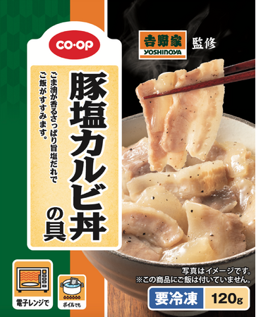 これまで、各地域生協と吉野家は、ご家庭でも吉野家の“牛丼”の味を味わっていただくために1993年に吉野家「冷凍 牛丼の具」を共同開発し、生協で本商品を取り扱うなど、約30年間交流を重ねてきましたが、この度、初めてCO・OP商品と吉野家のコラボ商品を発売することになりました。「CO・OP&吉野家」で販売を開始する冷凍食品「牛カルビ丼の具」「豚塩カルビ丼の具」は、共に吉野家の店舗では提供していない「CO・OP&吉野家」限定商品となります。外食で楽しめる本格的な「カルビ」をご家庭でも味わえるように、厚めのスライス肉をじっくり香ばしく焼き上げ、吉野家監修の元、新たに作り上げたオリジナルのたれを絡めて仕上げています。丼の具としてはもちろん、ご飯のおかずとしてもお楽しみください。