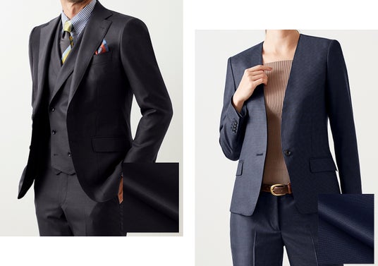 艶が美しく見栄えが大変良い人気のコレクション。ウール100%でありながらストレッチ性に優れており、着心地も良いのが特徴です。