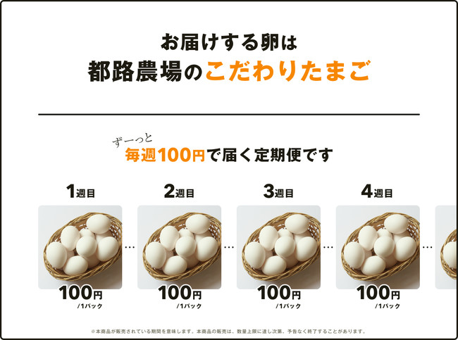 ユーザーは、おいしい食卓応援定期便に登録することで、週1回指定曜日に都路のたまごを1パック(10個)100円(税込108円)で受け取ることができます。