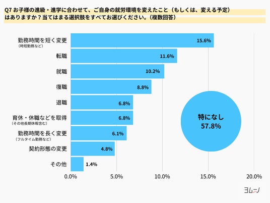 7)子どもの進級・進学で就労環境を変えた方は約4割!最多は時短勤務(15.6%)