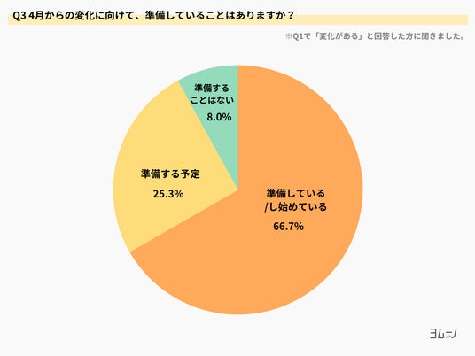 「生活に変化がある」と回答した方に「準備していることはあるか」聞いたところ、「準備している/し始めている」と回答した方は66.7%にのぼりました。