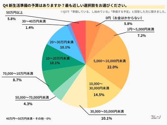 4月からの変化に向けて「準備している、し始めている」「準備する予定」と回答した方に、「新生活準備の予算」について聞きました。