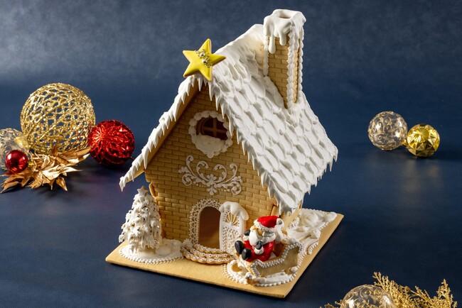 毎年ご好評をいただいているクッキーでつくる高さ約30cmのお菓子の家「ヘクセンハウス」。昨年よりも細やかでクリスマスムード溢れるデザインを施しました。繊細な模様が描いたドアの前には、ソリに乗ったサンタクロースを飾り、積もった雪にはソリの跡まで再現しています。この「ヘクセンハウス」はご自宅でクリスマスのデコレーションとして飾っていただけるよう、12月1日(金)よりお引き取りいただけます。賞味期限は約1か月です。