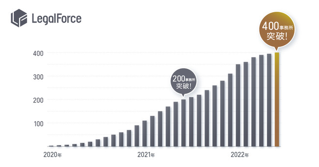 株式会社LegalForce(本社:東京都江東区 代表取締役社長:角田望、以下LegalForce)は、提供する契約審査プラットフォーム「LegalForce」の法律事務所への有償導入数が、400事務所を突破したことをご報告いたします。