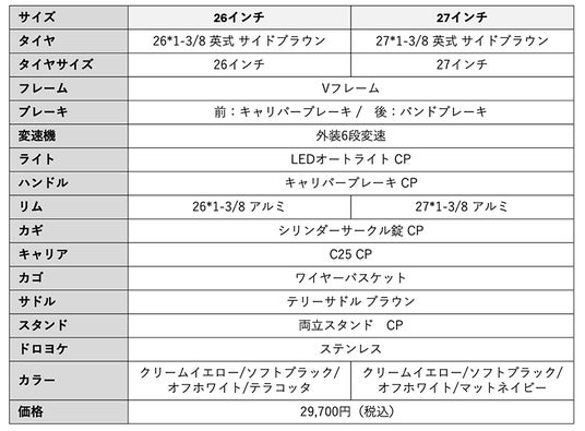 ※26インチはタウンタイプ、27インチはシティタイプでハンドル形状が異なります。
