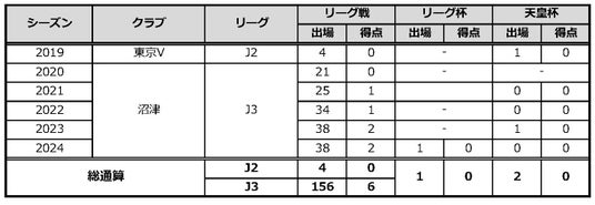 サッカー歴:羽衣SC→東京ヴェルディジュニア→東京ヴェルディJrユース→東京ヴェルディユース→中央大→東京ヴェルディ→アスルクラロ沼津→東京ヴェルディ→アスルクラロ沼津→東京ヴェルディ