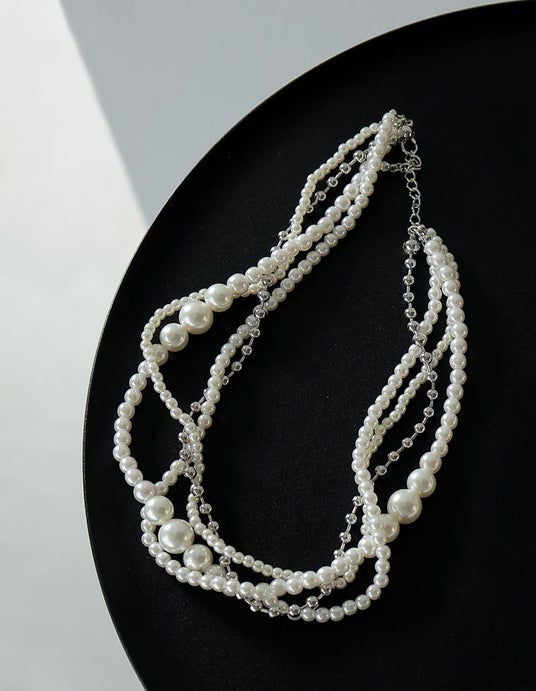 フェイクパールが連なったボリューミーなネックレスが登場。