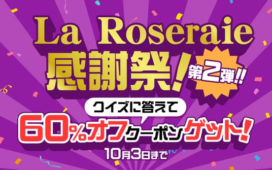 La Roseraie感謝祭 第二弾!!クイズに答えて60%オフクーポンゲット!!