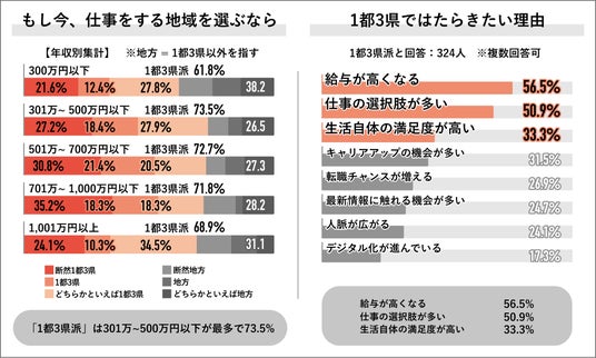 ・全体の70.2%が今仕事をするなら「1都3県」を選択 「給与が高くなる」「仕事の選択肢」が理由上位