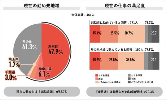 ・全体の58.7%が「1都3県」に勤務 内79.3%が現在の仕事に満足 地方勤務派の満足度が77.9%