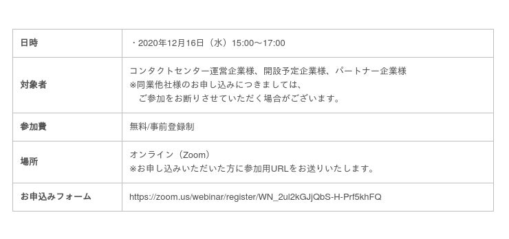 展示会に参加できなかった方、コンタクトセンター業務の改善にお悩みの方、ぜひ奮ってご参加ください。