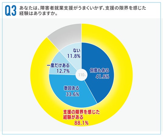 一方で、「支援の限界を感じた経験がある」との回答は約9割(88.1%)に達しました 。内訳は「何度もある」が41.8%、「数回ある」が33.6%となっており、多くの支援者が日常的に高い壁に直面していることがわかります。