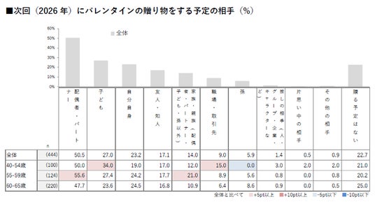 - 自由回答結果からも、かつて一般的だった ”職場の義理チョコ文化” は大きく縮小し、贈る相手も身近な家族や自分へと絞られている傾向が見られた。