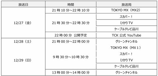 本番組は、12月27日(金)のTOKYO MX(MX2)を皮切りに東京大賞典当日(12/29)までスカパー!やグリーンチャンネルなどで放送されるほか、TCK公式YouTubeでも配信予定です。