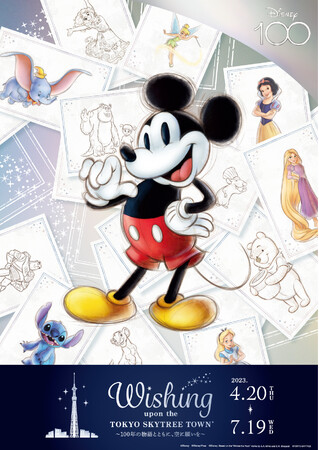 東京スカイツリータウンでは、ディズニー創立100周年(ディズニー100)を記念した様々なイベント「Wishing upon the TOKYO SKYTREE TOWN(R)~100年の物語とともに、空に願いを~」を、2023年4月20日(木)~7月19日(水)の期間、開催します。
