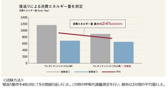 また、腰や背中を適切に支え、スムーズに寝返りを打つことができ、寝返りによる消費エネルギーを最大約24%減らします。