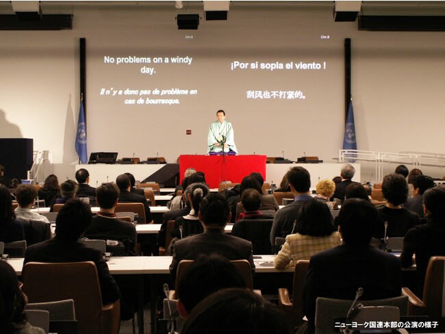 古典落語、創作落語に取り組み、また活躍の幅は日本だけでなく、2000年に世界最大の芸術祭エジンバラ・フェスティバル(英国)に落語家として初めて参加し、独自の字幕方式での海外公演を開催しました。各国大使館の主催公演や国際演劇祭の招待公演などで、英・仏・米・独・露・ブルガリア・ノルウェー・トルコ・韓国・カナダ・ベトナム・カンボジアなど、のべ20数カ国で公演を開催しました。落語家初となるニューヨーク、ブロードウェー公演やニューヨーク国連本部とカーネギーホールで公演を行うなど、落語文化を世界に発信しています。2006年には文化庁文化交流大使に任命され、同年に発行されたNewsweek誌「世界が尊敬する日本人100」に選ばれました。