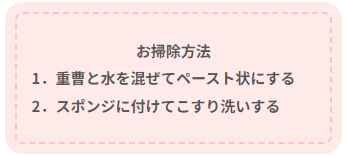 本文では、より詳細な掃除方法と、普段からできる汚れ予防法についても記載しておりますので、合わせてご覧ください。