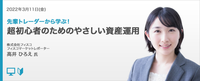 株式会社外為どっとコム(本社:東京都港区、代表取締役社長:竹内 淳)は、明日3月11日(金)19時より、当社主催の無料オンラインセミナー『先輩トレーダーから学ぶ!超初心者のためのやさしい資産運用』を開催することとなりましたので、お知らせいたします。
