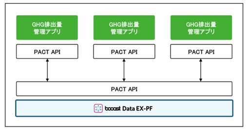 「booost Data EX-PF」は、他社を含むPACT対応の各種アプリケーションに対し、トレーサビリティをはじめとするサプライチェーンにおけるデータ連携に必要な機能を提供します。