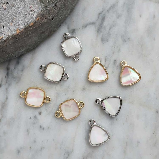 天然素材のシェルを大変薄く加工し、シート同士をつなぎ合わせたものをカットして封入しているパーツです。
