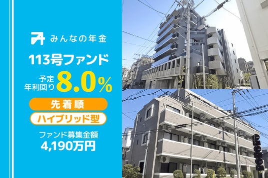 株式会社ネクサスエージェント(本社:東京都港区 代表取締役社長:岩田講典)が運営する、誰でも手軽に安全な資産運用が始められる不動産クラウドファンディングサービス『みんなの年金』にて、113号ファンド(以下、本ファンド)を組成し、2025年1月15日(水)より先着順にて出資の募集を開始したことをお知らせいたします。