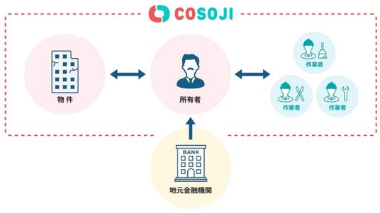 「COSOJI」のプラットフォーム上でリフォームや修繕工事に加え、地元金融機関からの融資を組み合わせることが可能になります。