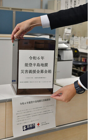 高槻市では1月5日(金曜日)、高槻市役所本館など5施設に「令和6年能登半島地震災害義援金」の募金箱を設置しました。寄せられた義援金は、日本赤十字社を通じて被災都道府県に設置される災害義援金配分委員会へ送金のうえ、被災者の支援に充てられます。